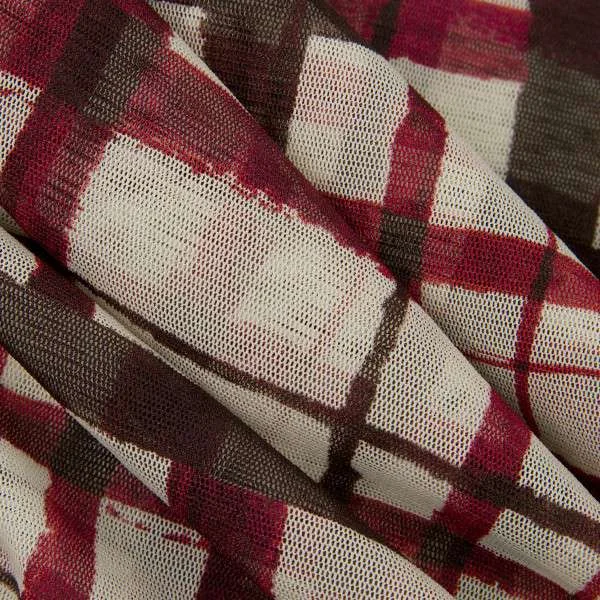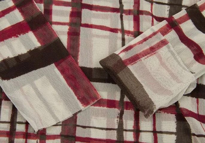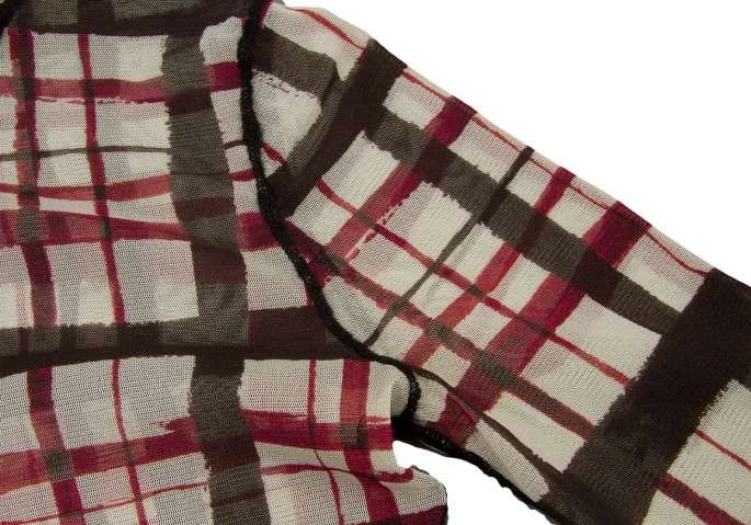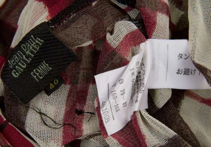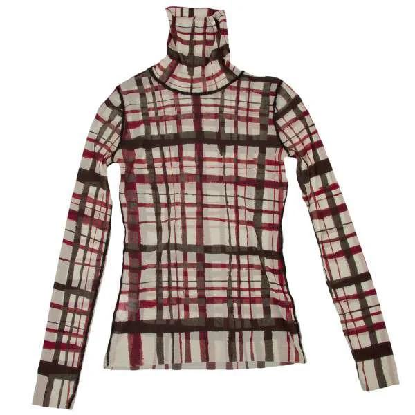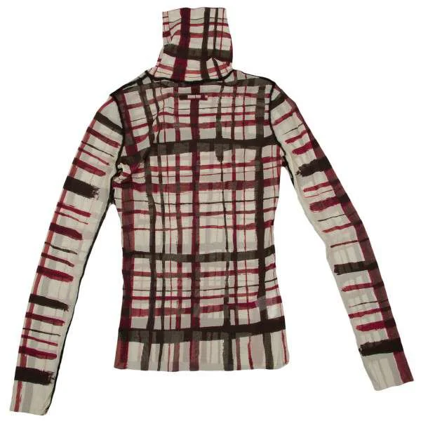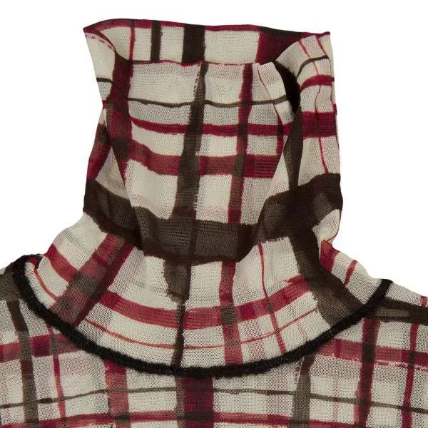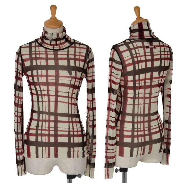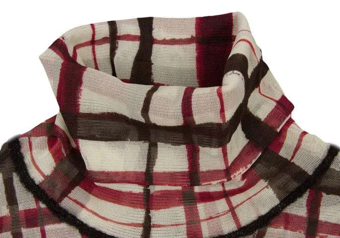ジャンポールゴルチエ ファム Jean Paul GAULTIER FEMME パワーネット格子柄タートルネックカットソー クリーム赤茶40