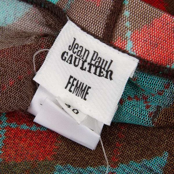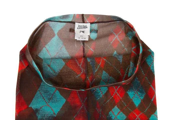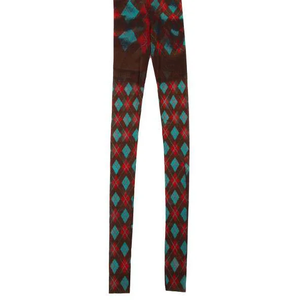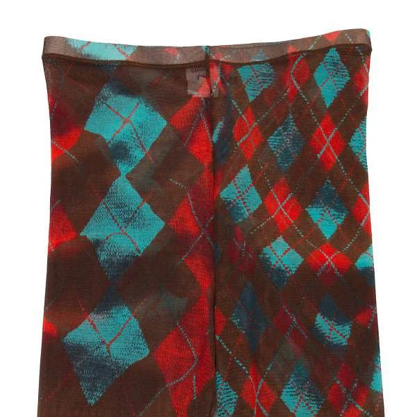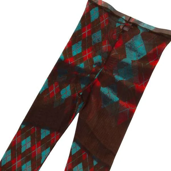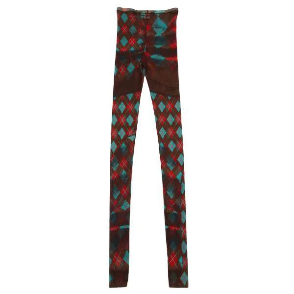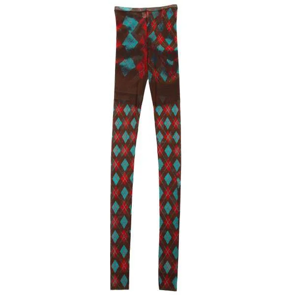ジャンポールゴルチエ ファムJean Paul GAULTIER FEMME パワーネットアーガイル柄レギンス 赤青茶40