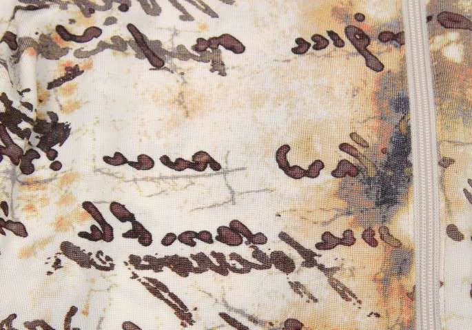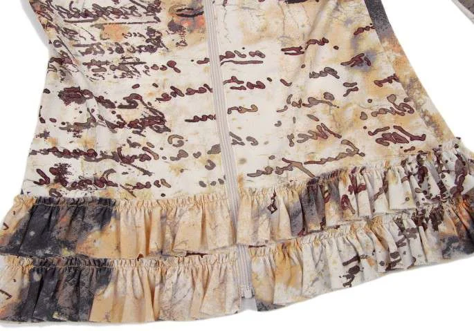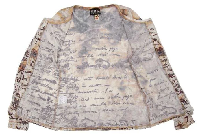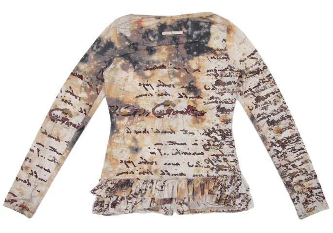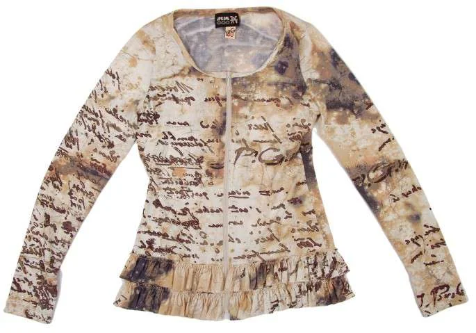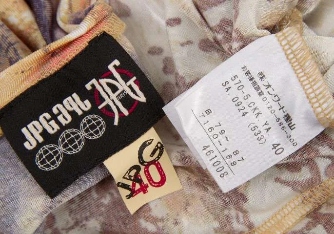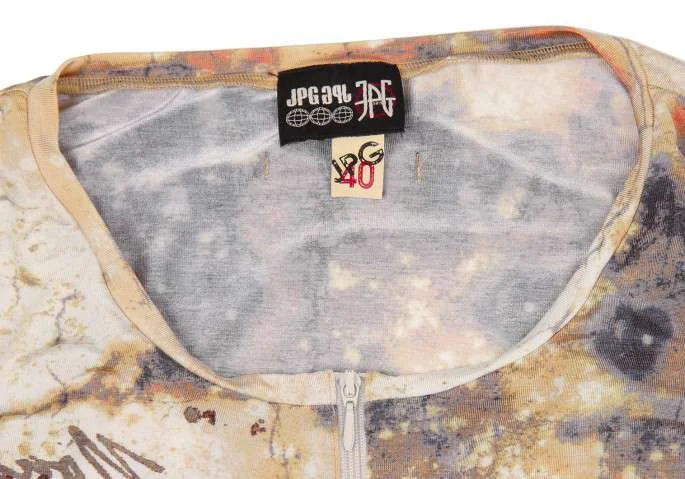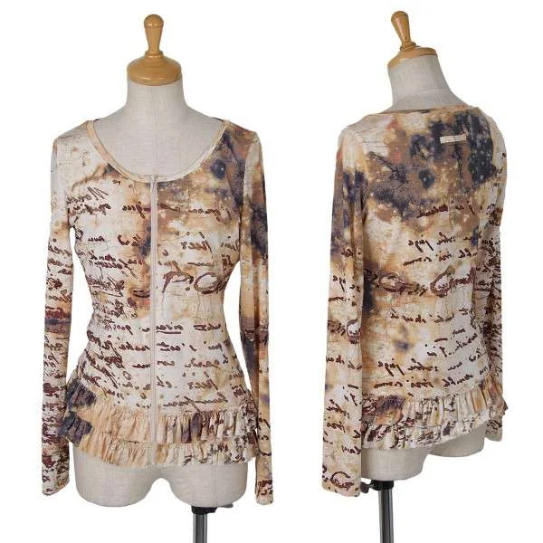ジャンポールゴルチエ Jean Paul GAULTIER ARIS 文字プリントストレッチ裾フリルジップブラウス ベージュ40