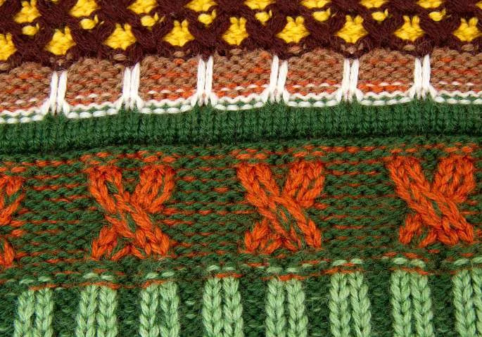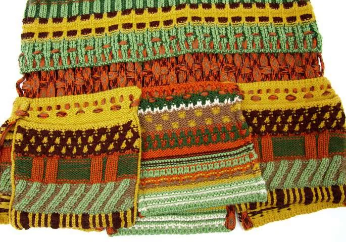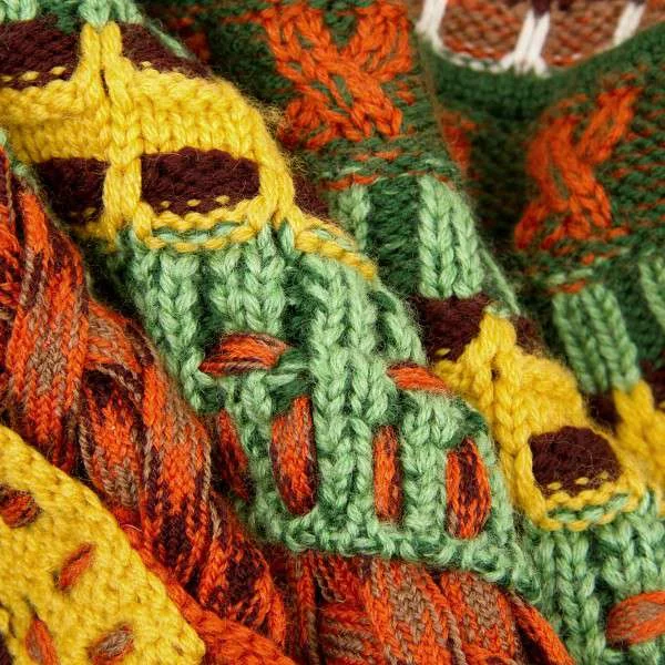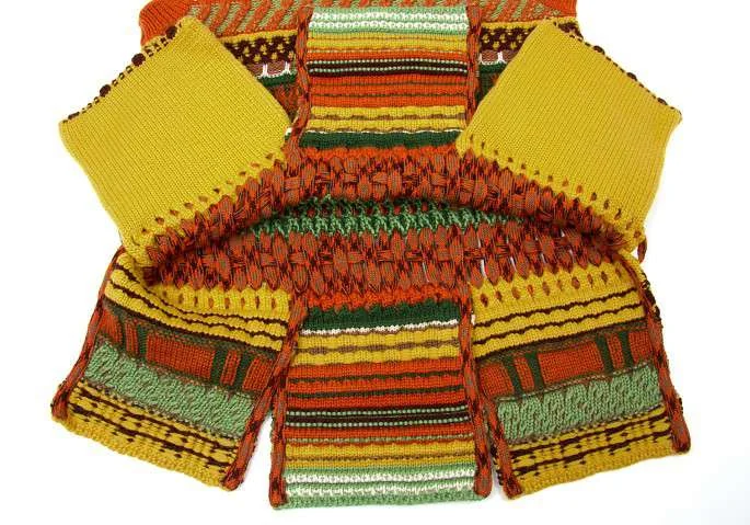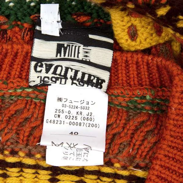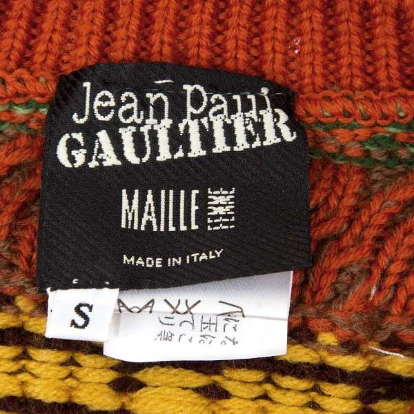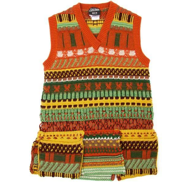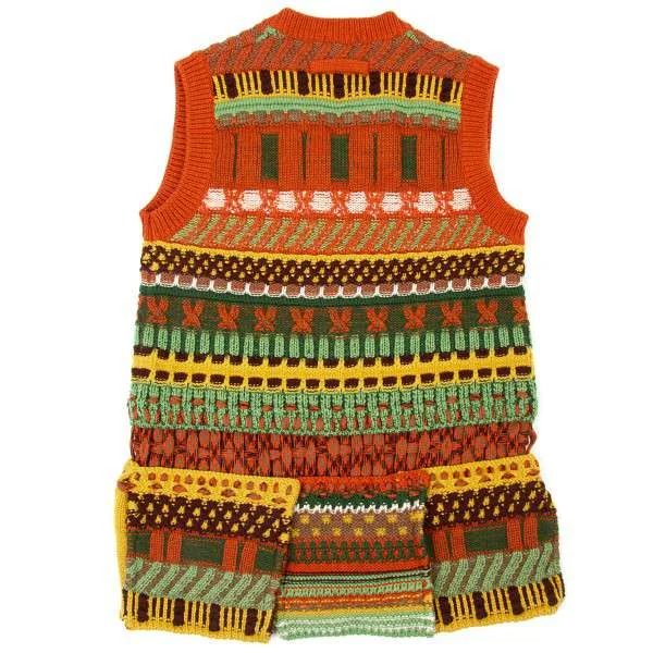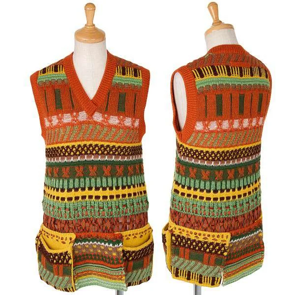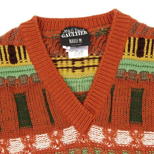 ジャンポールゴルチエマイユ Jean Paul GAULTIER MAILLE FEMME ウールVネックノースリーブ模様編みニット オレンジ茶緑他S