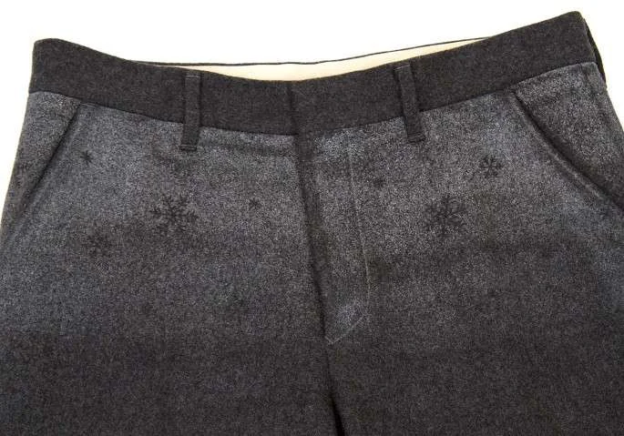 サスクワァッチファブリックスSASQUATCHfabrix. 雪結晶ペイントウールパンツ チャコールL