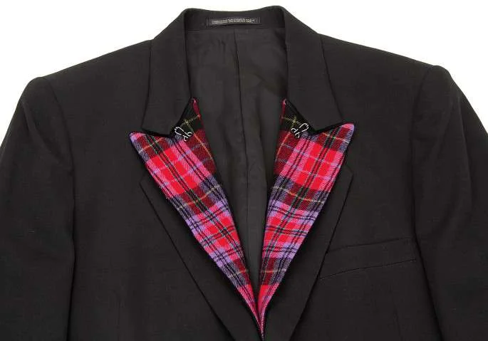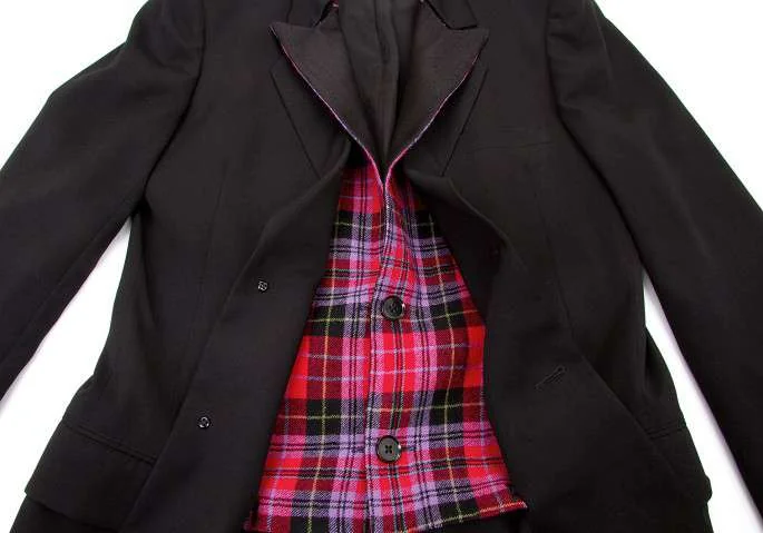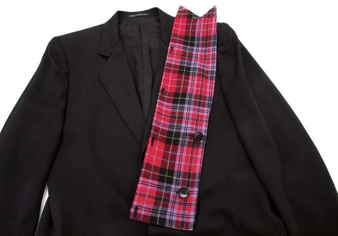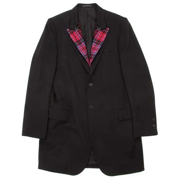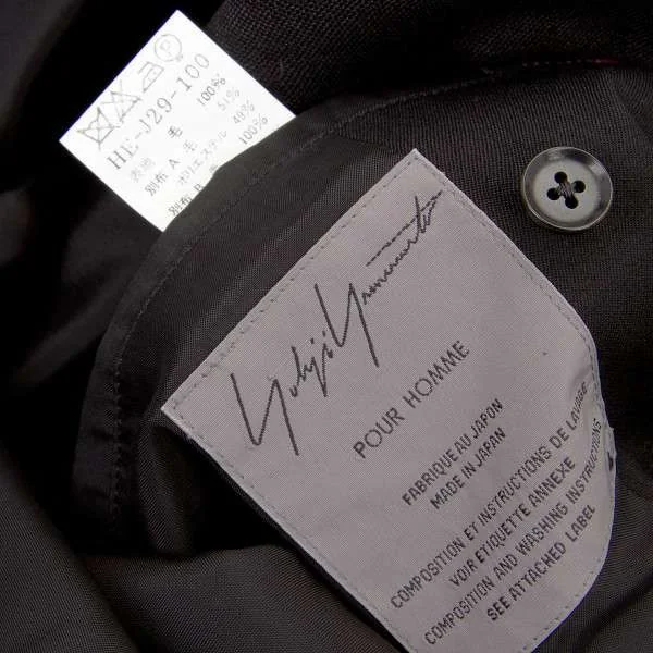 ヨウジヤマモト プールオム yohji yamamoto pour homme レイヤードチェックラペルウールギャバロングジャケット 黒4
