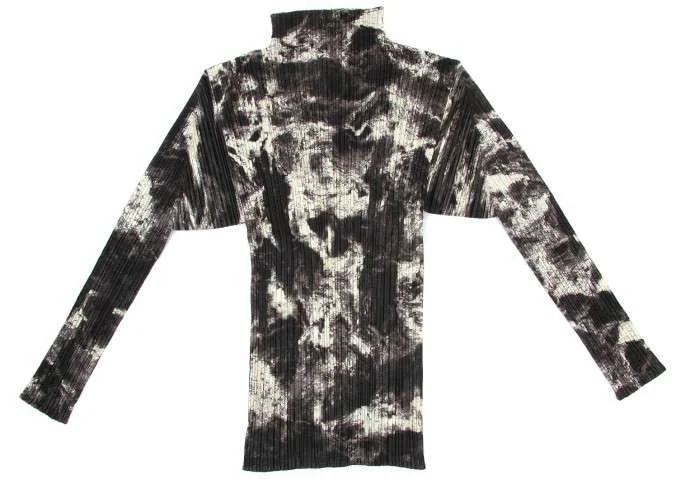 イッセイ ミヤケISSEY MIYAKE プリーツプリーズPLEATS PLEASE マーブル柄ハイネックプルオーバー 茶×ベージュ3