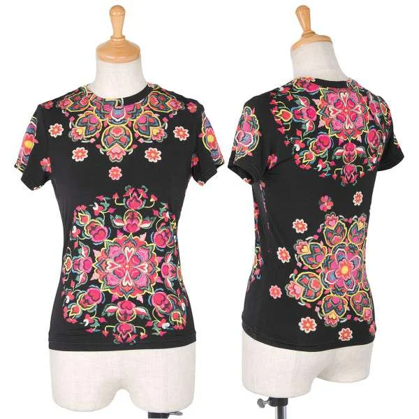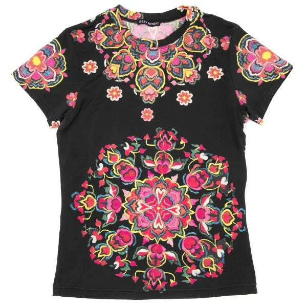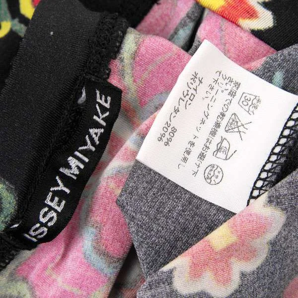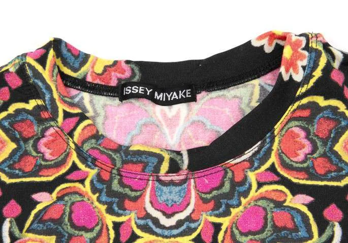 【SALE】イッセイミヤケISSEY MIYAKE 花柄プリントストレッチ半袖カットソー 黒黄ピンク他 黒、黄、ピンク、緑、青、オフ白2