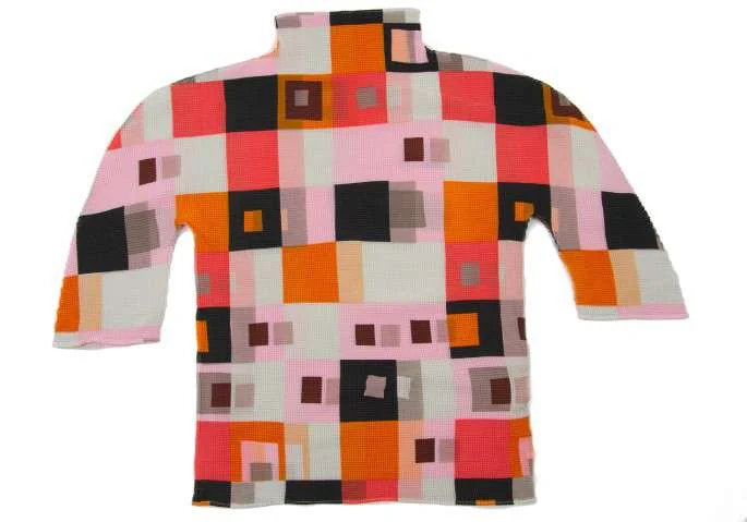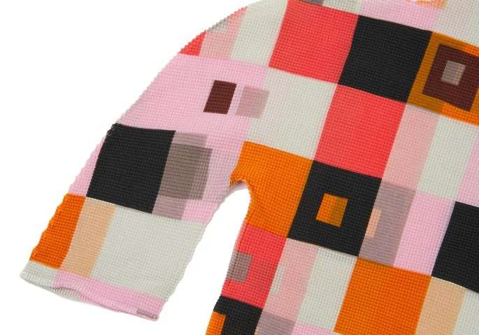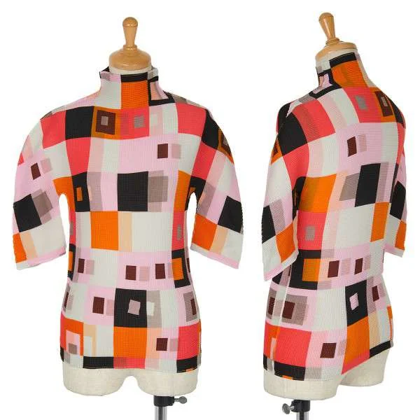 イッセイミヤケISSEY MIYAKE me スクエアープリントハイネック半袖カットソー マルチM位