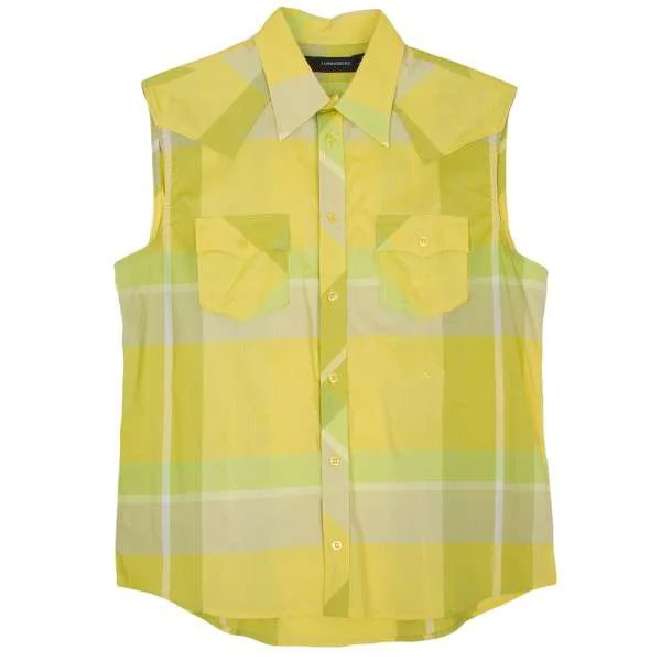 【SALE】ジェイリンドバーグJ.INDEBERG コットンチェックノースリーブウエスタンシャツ 黄L