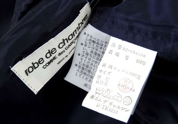 ローブドシャンブル コムデギャルソンrobe de chambre COMME des GARCONS ウールキュプラリバーシブル2Bジャケット 紺M〜L位
