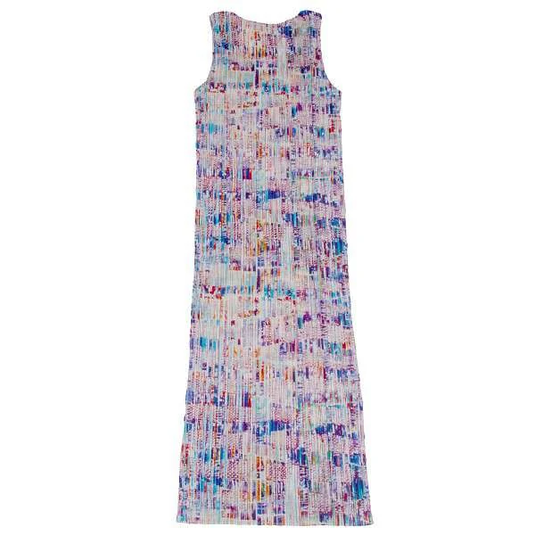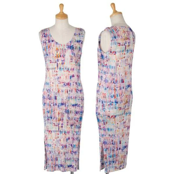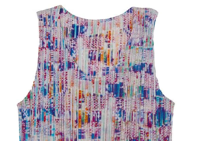 プリーツプリーズPLEATS PLEASE  まだらプリントノースリーブワンピース 白マルチ3