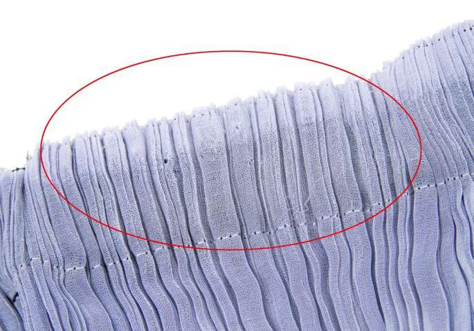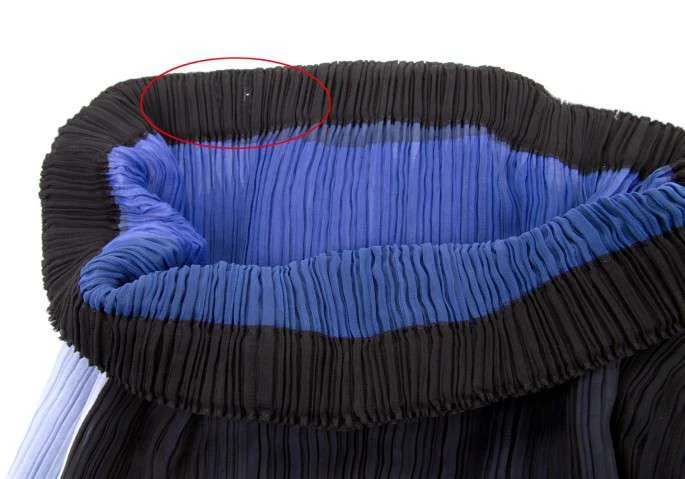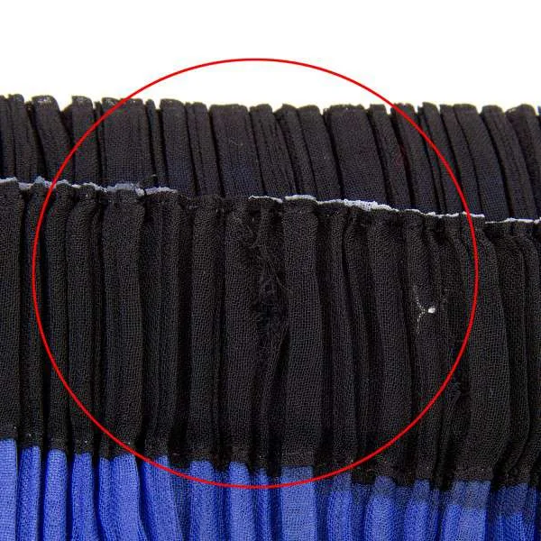 ブランドタグ、品質タグなし。ウエスト部分に穴あり。身頃に糸引きあり(写真参照)。目立ったシミ、汚れ等はありません。クリーニング済み
