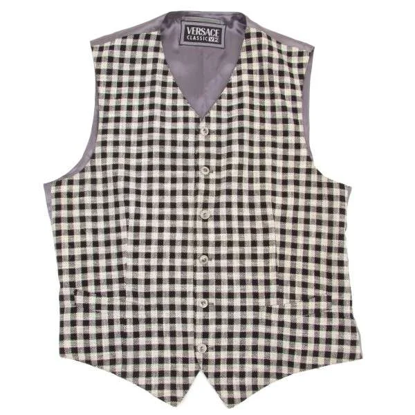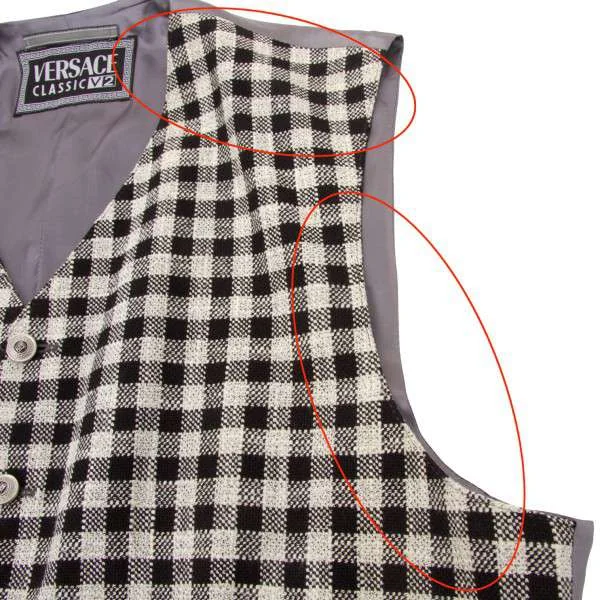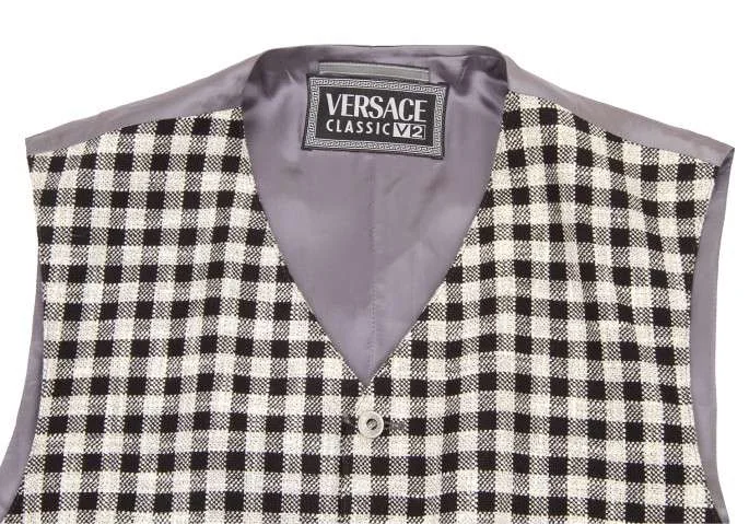 ベルサーチクラシック VERSACE CLASSIC ブロックチェックベスト 白黒52