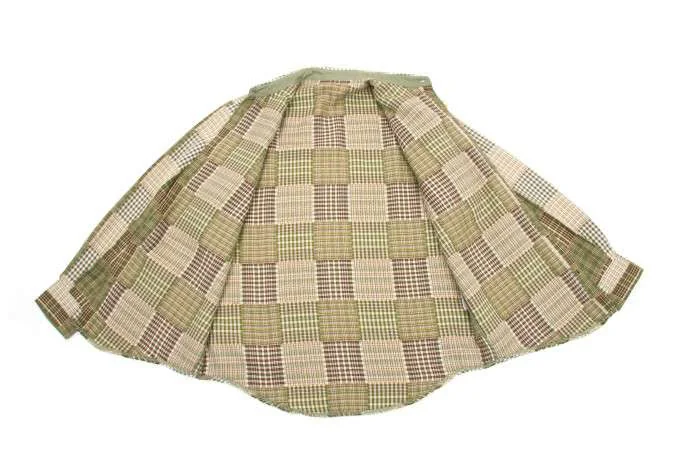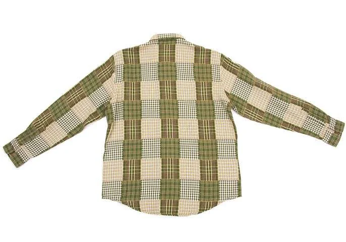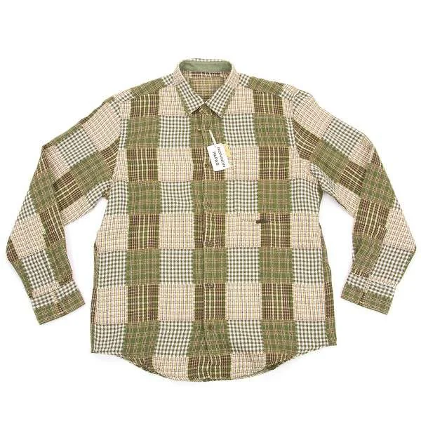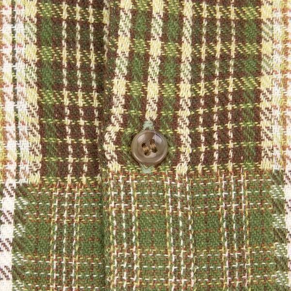 パパスPAPAS ミックス チェックコットンシャツ モスグリーンL