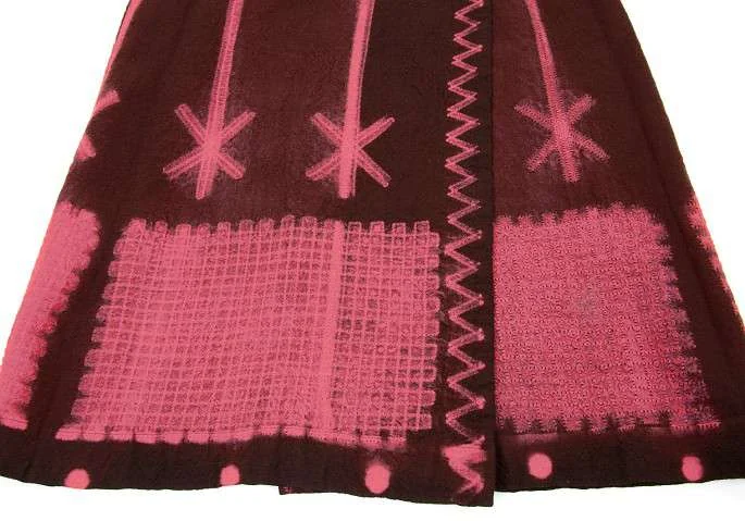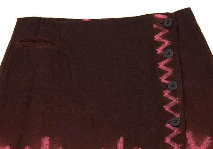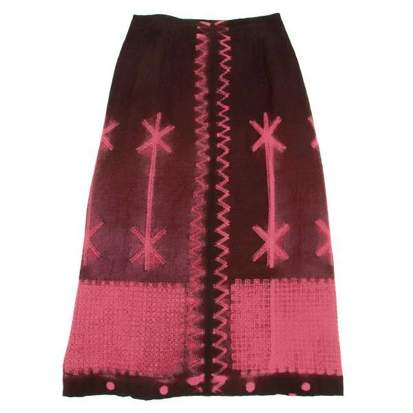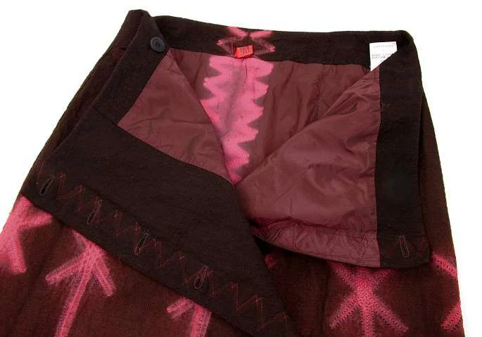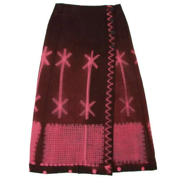 イッセイミヤケ ハート ISSEY MIYAKE HaaT 柄製品染めフロントボタンロング巻きスカート エンジ1