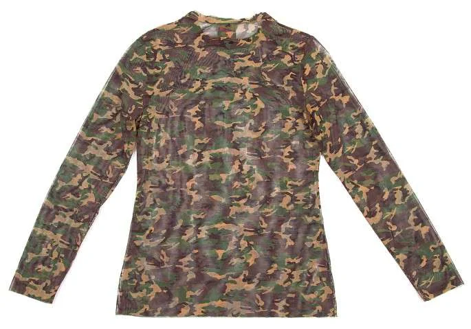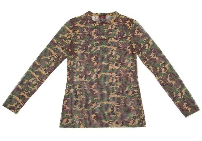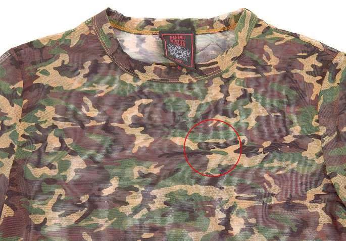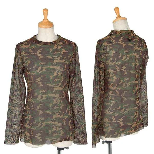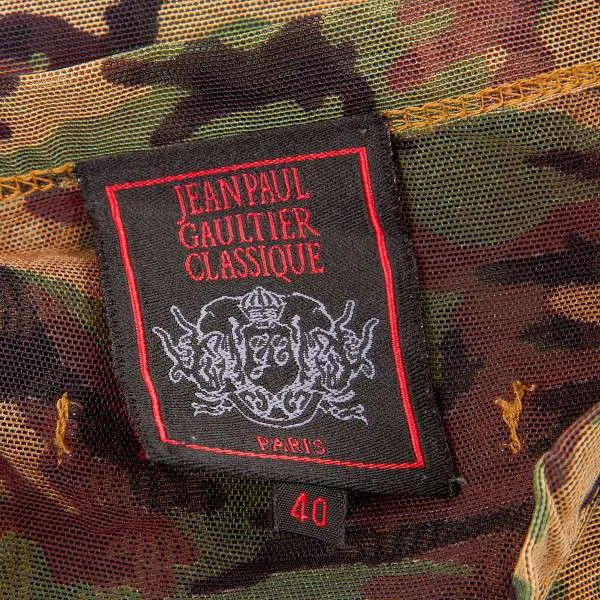 ジャンポールゴルチエ クラシックJean Paul GAULTIER CLASSIQUE カモフラージュ柄パワーネット長袖カットソー カーキ緑茶40