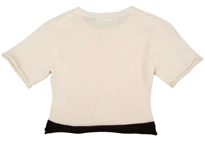 【SALE】ワイズY's バイカラーショートコットンニットカットソー クリーム黒M位