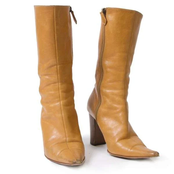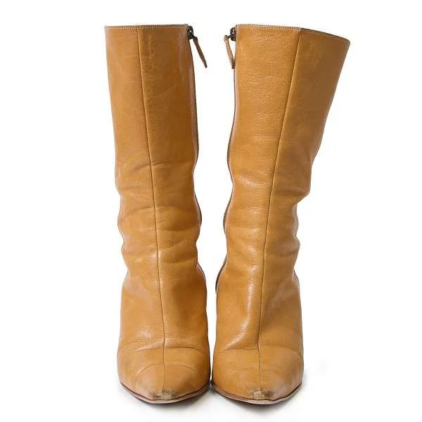 【SALE】バーバリーBURBERRY サイドジップヒールブーツ 茶色24