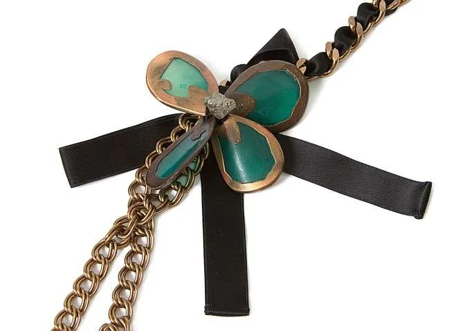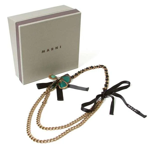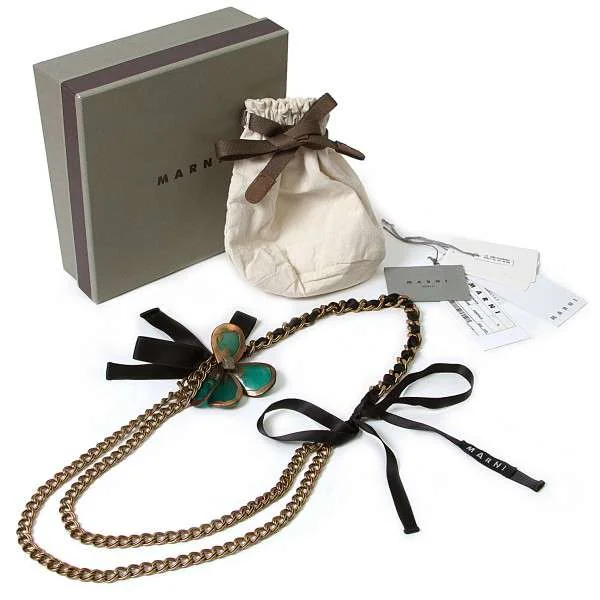 マルニMARNI モチーフ付きチェーンネックレス ターコイズゴールド