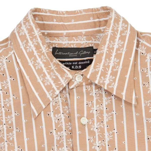 インターナショナルギャラリービームスInternational Gallery BEAMS 刺繍ストライプシャツ モカL