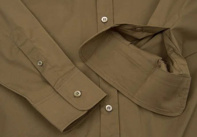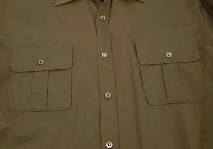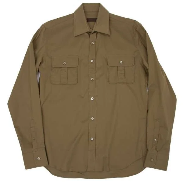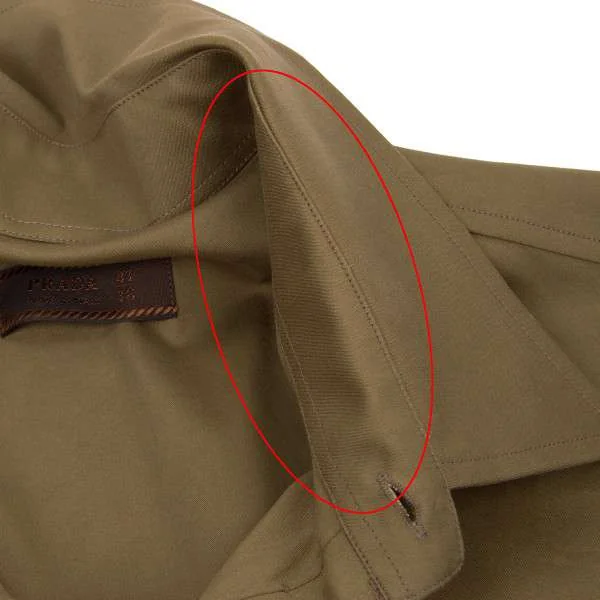 プラダPRADA ポケットデザインストレッチコットンシャツ カーキ41/16