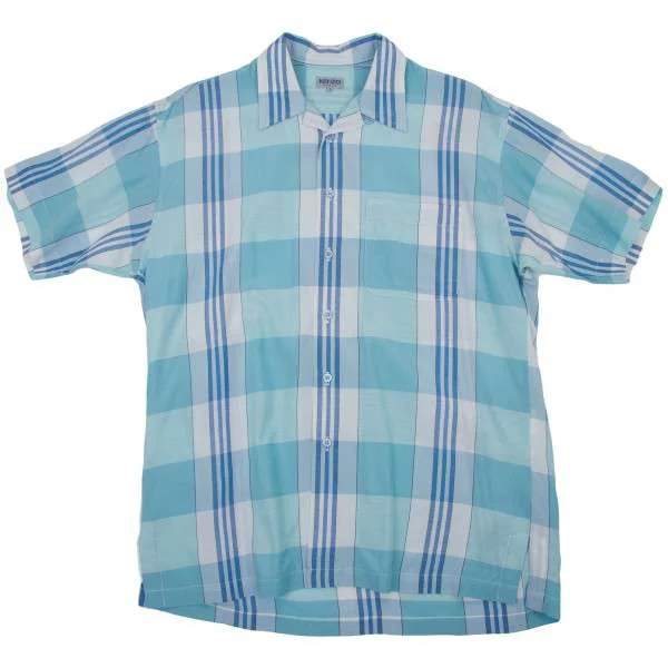 【SALE】ケンゾー オムKENZO HOMME ブロックチェック半袖シャツ ライトブルー3