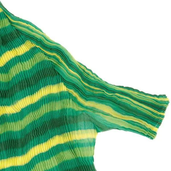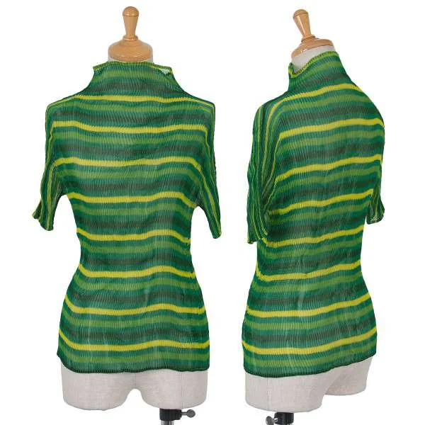 イッセイミヤケ フェット ISSEY MIYAKE FETE ハイネックボーダープリーツ半袖カットソー 緑2
