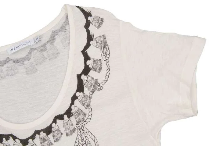 【SALE】シーバイクロエSEE BY CHLOE プリントカットソー地ワンピース 生成レンガ 生成りレンガ40