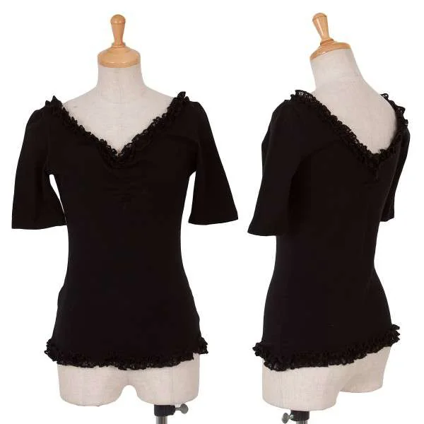 ジャンポールゴルチエ Jean Paul GAULTIER コットンストレッチフリルパイピング半袖カットソー 黒40