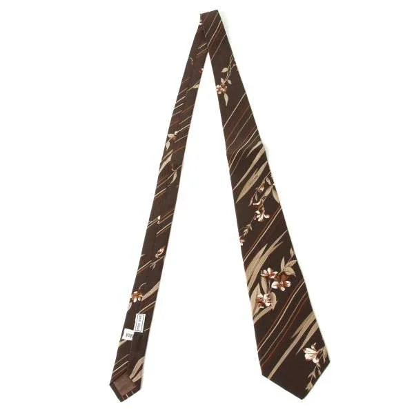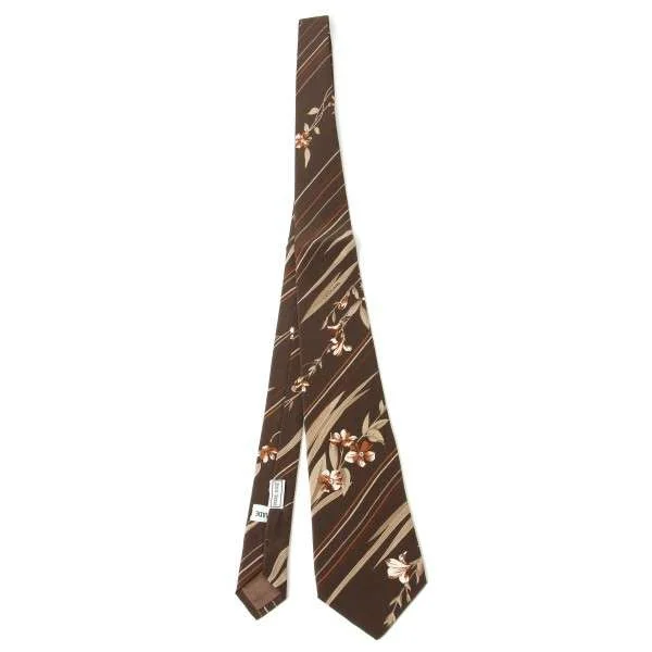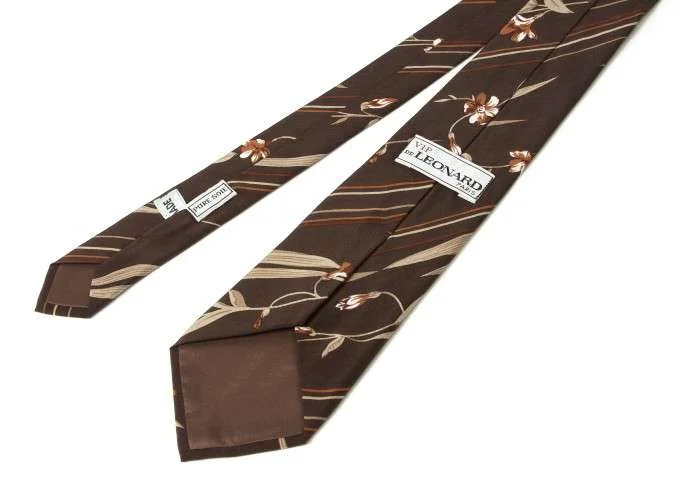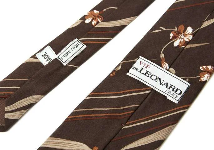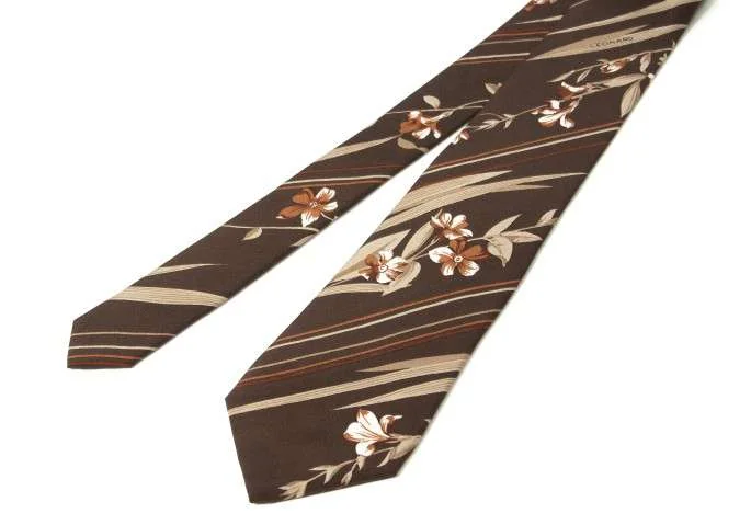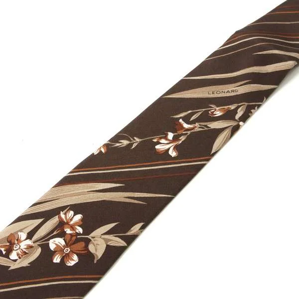レオナールLEONARD 花柄ストライプネクタイ 茶色