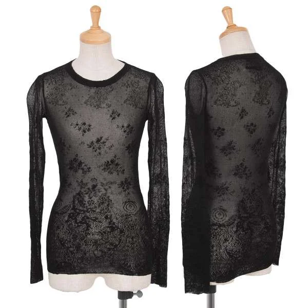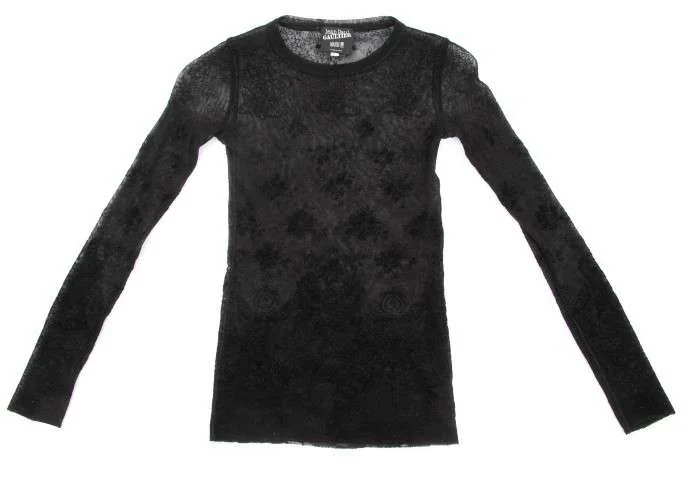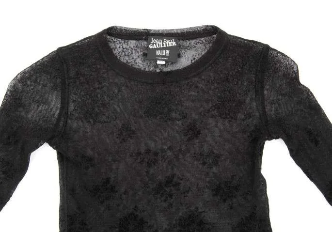 ジャンポールゴルチエ マイユ ファムJean Paul GAULTIER MAILLE FEMME フロッキー加工長袖パワーネットプルオーバー 黒XS