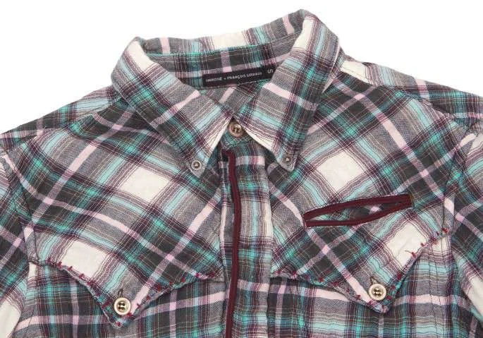 【SALE】マリテフランソワジルボーMARITHE + FRANCOIS GIRBAUD チェックウエスタン風ガーゼシャツ ブルー生成りS