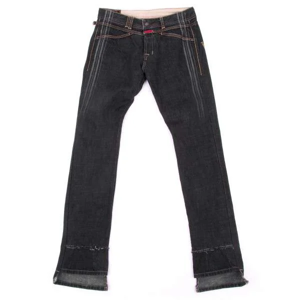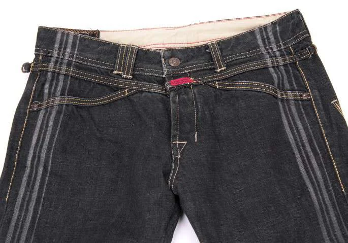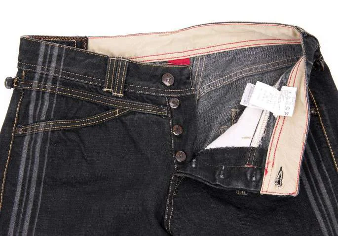 マリテフランソワジルボーMARITHE + ラインプリントデニムコットンパンツ 黒M