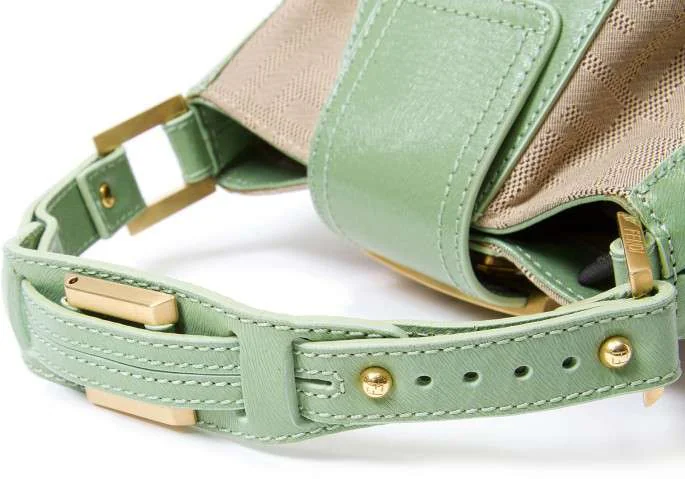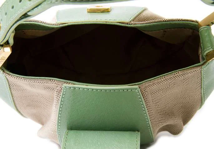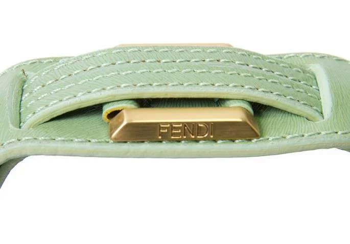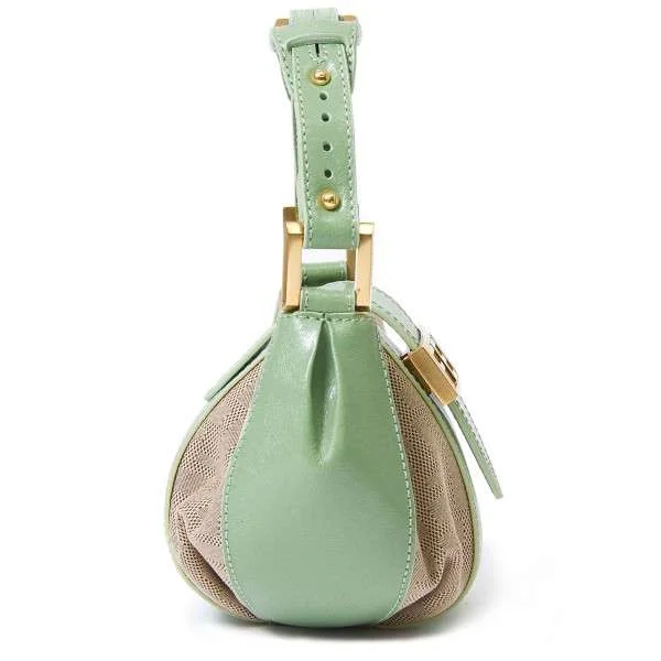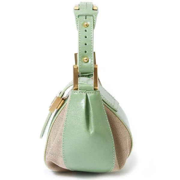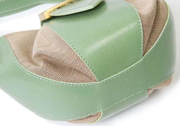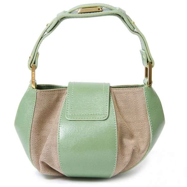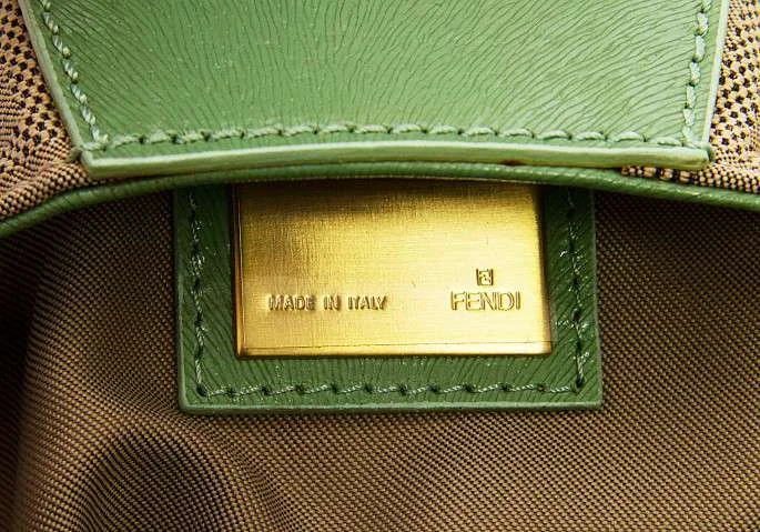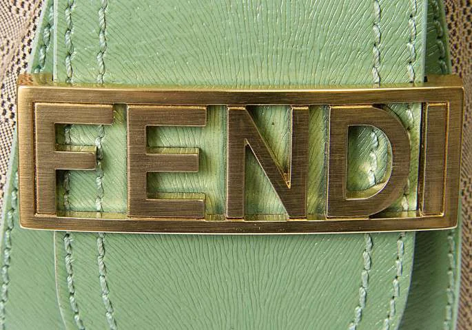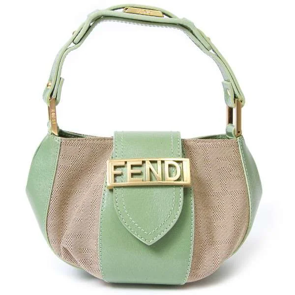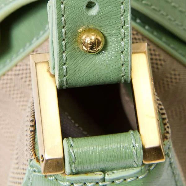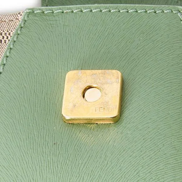 フェンディFENDI ロゴプレートハンドバッグ ベージュ緑
