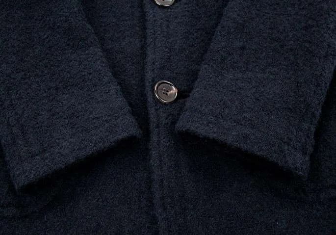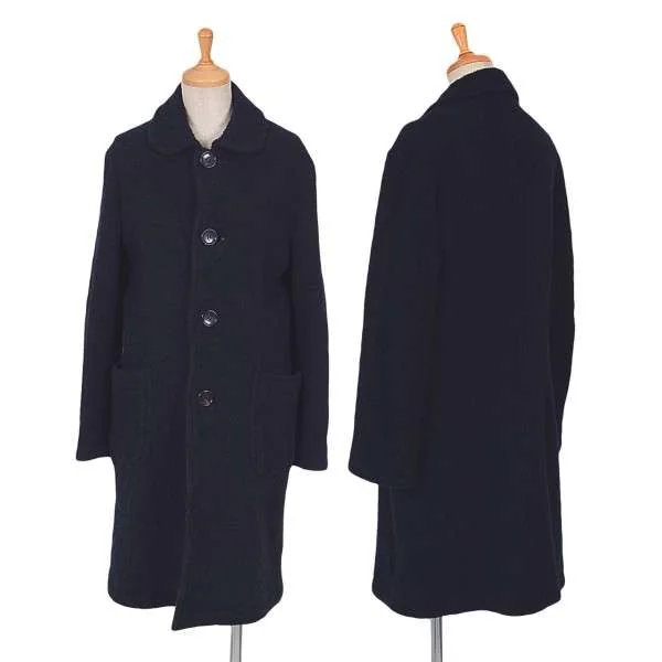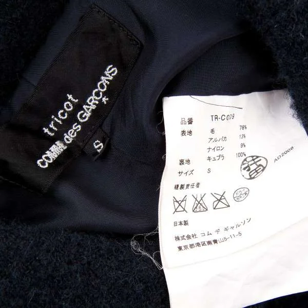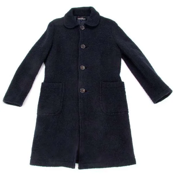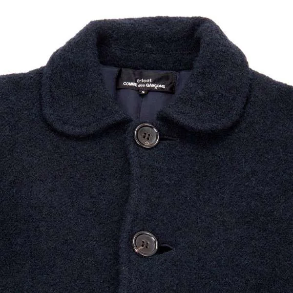 トリコ コムデギャルソンtricot COMME des GARCONS アルパカ混丸襟ステンカラー縮絨コート 紺S