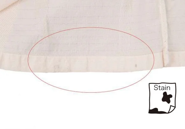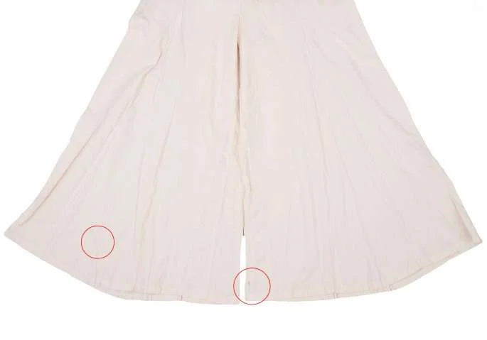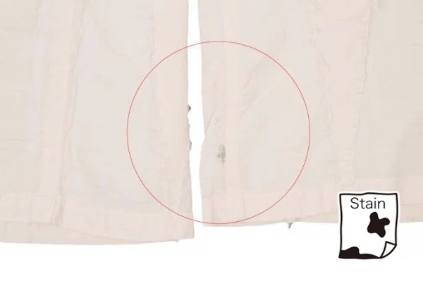 左足裾内側・裾裏・右足前に汚れ有り(写真参照)。その他はほつれ等なくいい状態です。クリーニング済み