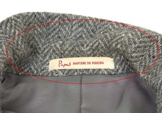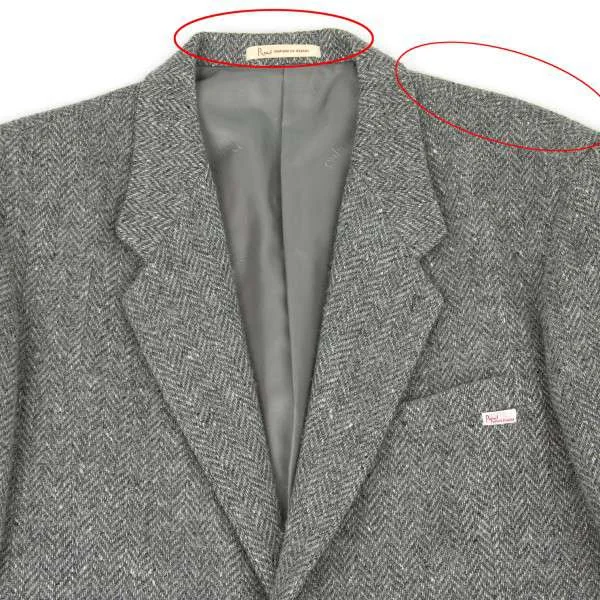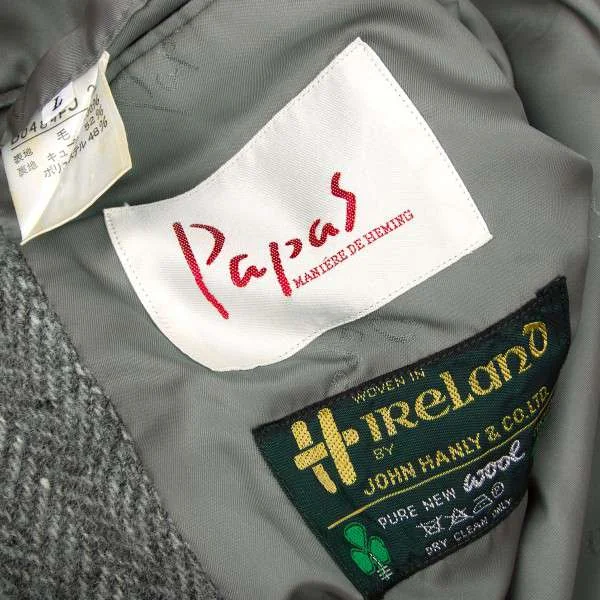 パパスPapas ツイードテーラードウールジャケット グレーL