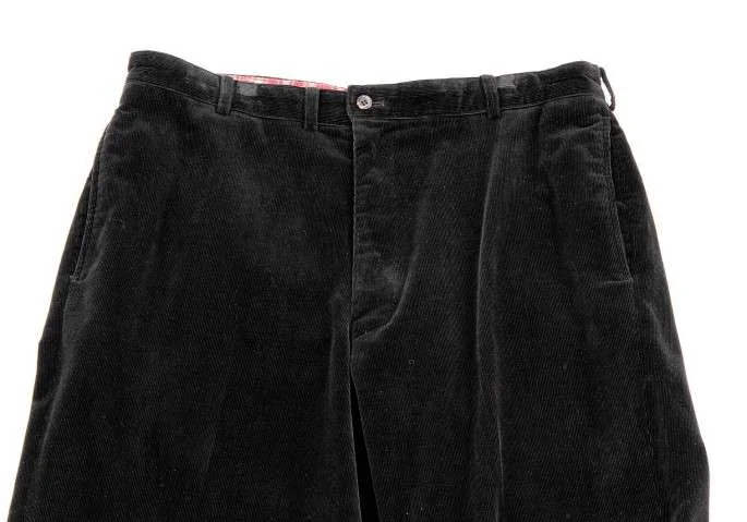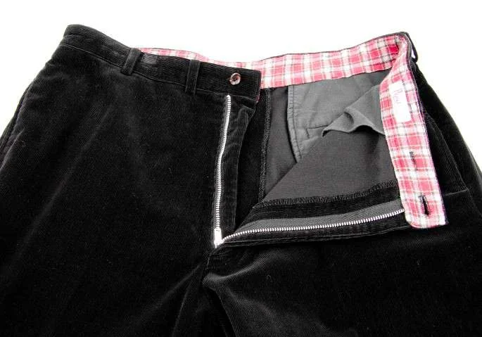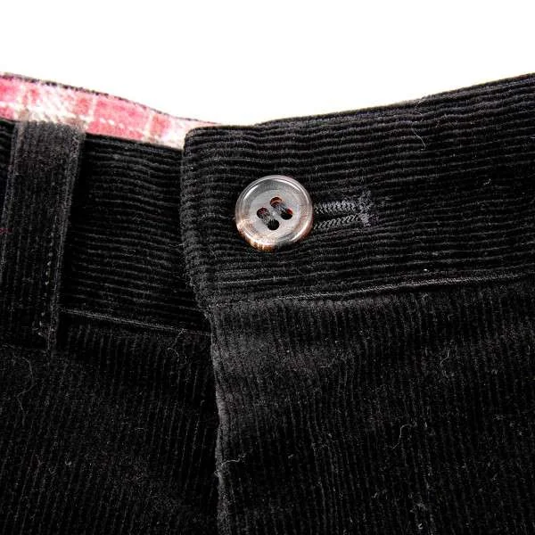 【SALE】パパスPapas ウエスト裏タータンチェックコーデュロイコットンパンツ 黒赤L