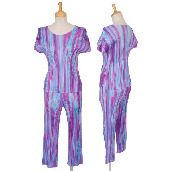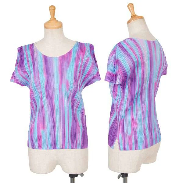 プリーツプリーズPLEATS PLEASE マーブル模様カットソー パープルブルー3