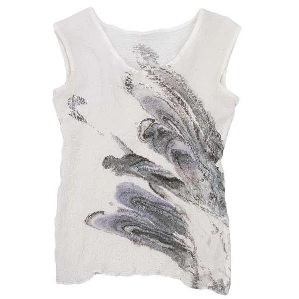 イッセイミヤケ ミー ISSEY MIYAKE me プリントカリフラワーノースリーブ オフホワイトM位
