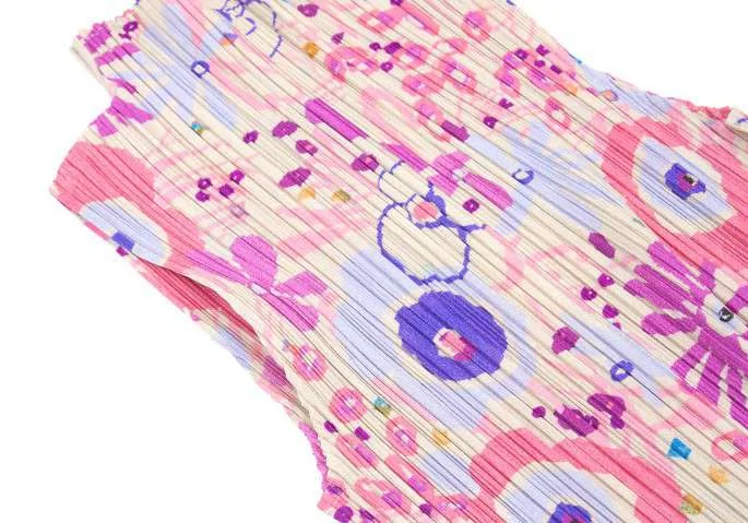 プリーツプリーズPLEATS PLEASE  花柄ノースリーブワンピース ピンク3