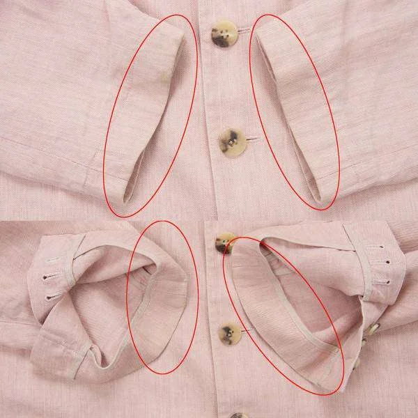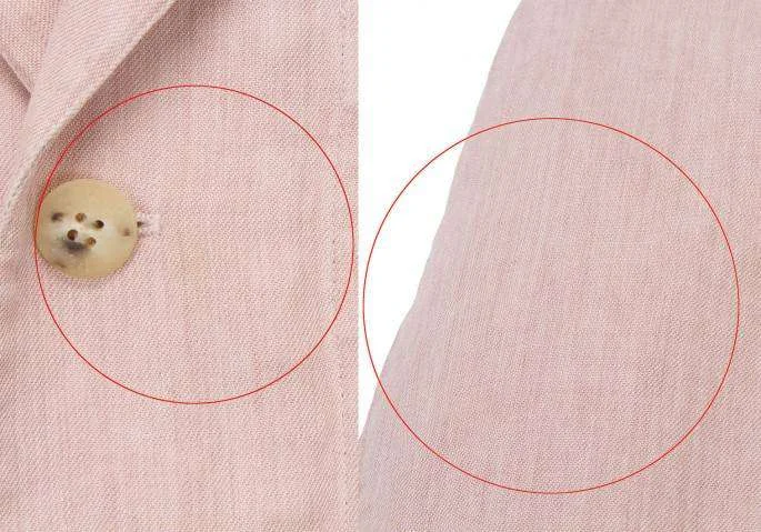 襟裏、袖口、袖口裏に汚れあり。身頃、袖にシミあり(写真参照)。クリーニング済み