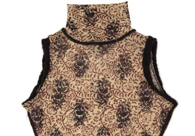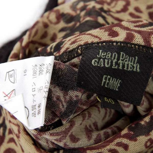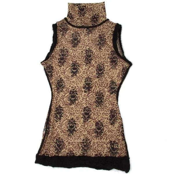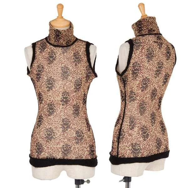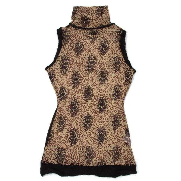 ジャンポールゴルチエファムJean Paul GAULTIER FEMME ノースリーブニット切り替えハイネックパワーネットプルオーバー 黒茶黄40