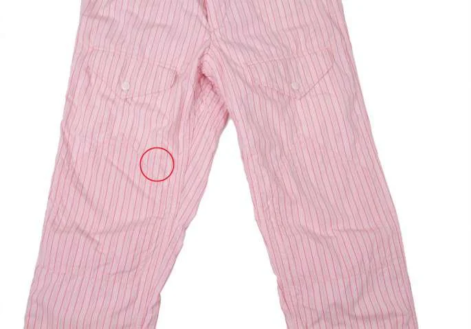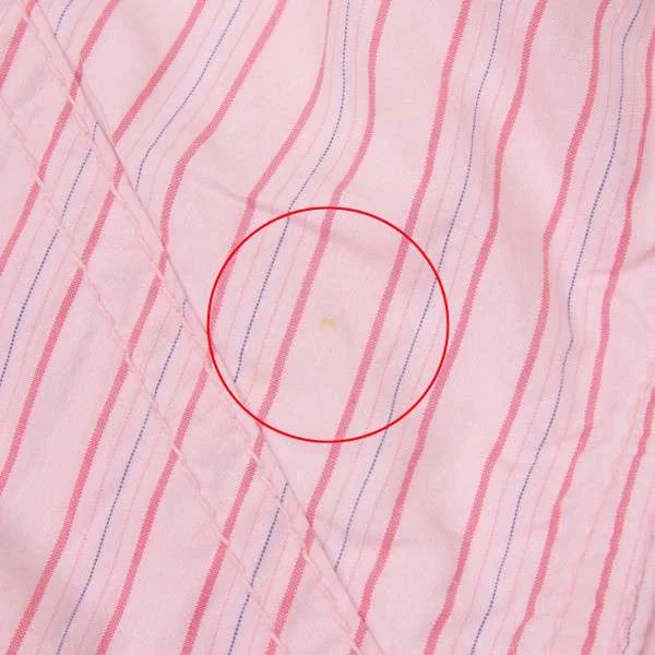 ジャケット:襟裏に薄汚れあり。左袖口に薄シミあり。パンツ:右足膝上に点シミ、裾のテープに汚れ多数あり(写真参照)。その他は目立ったシミ、汚れ、ほつれ等なくいい状態です。クリーニング済み