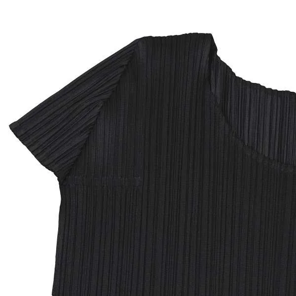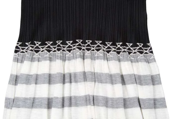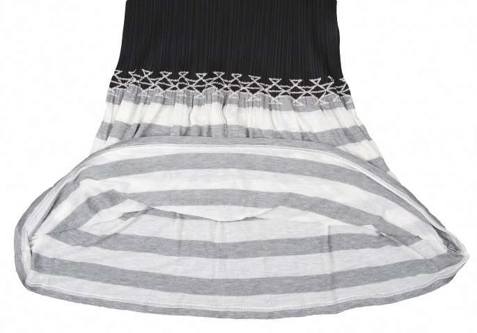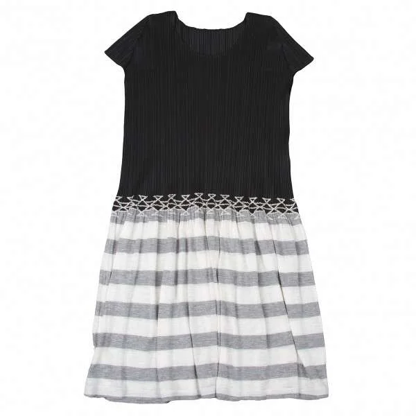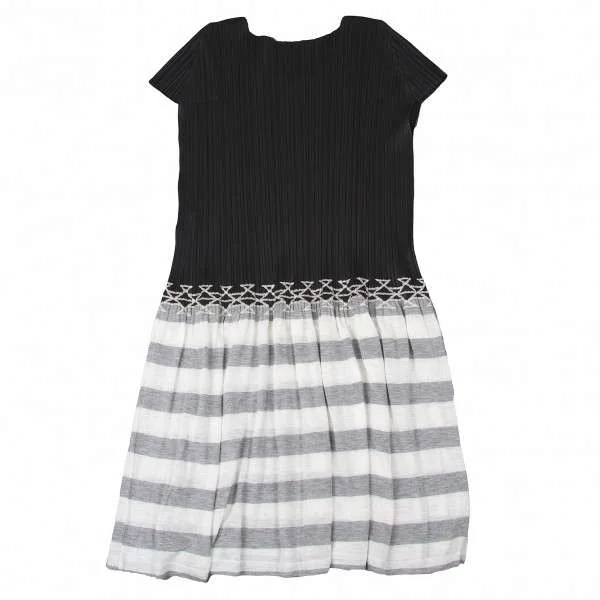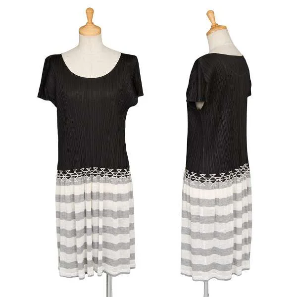 プリーツプリーズPLEATS PLEASE ボーダーカット地切り替えワンピース 黒3