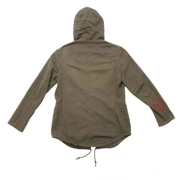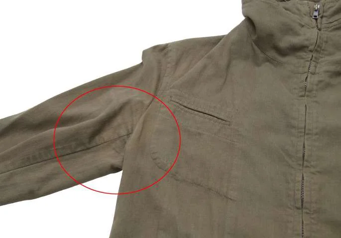 右袖に汚れあり。変色、色褪せ多数あり(写真参照)。