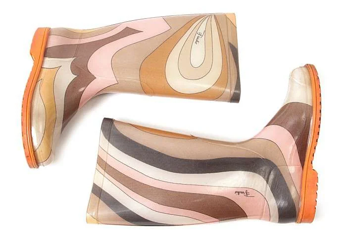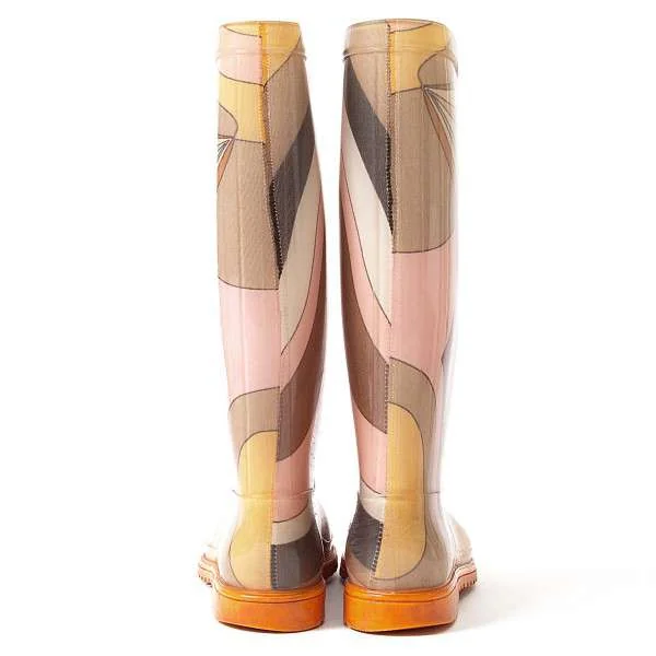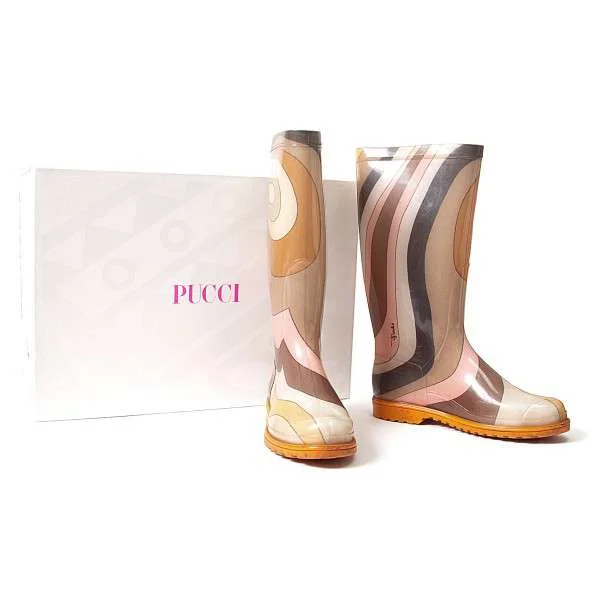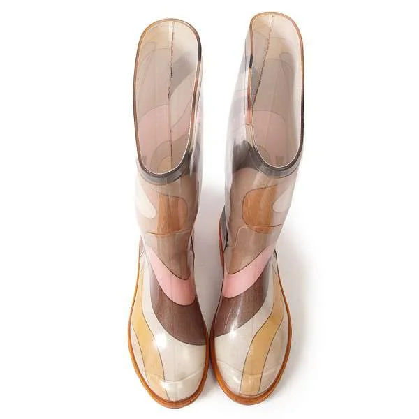 【SALE】エミリオプッチEMILIO PUCCI カラーソールレインブーツ ベージュピンク茶23