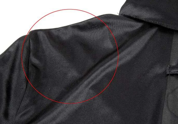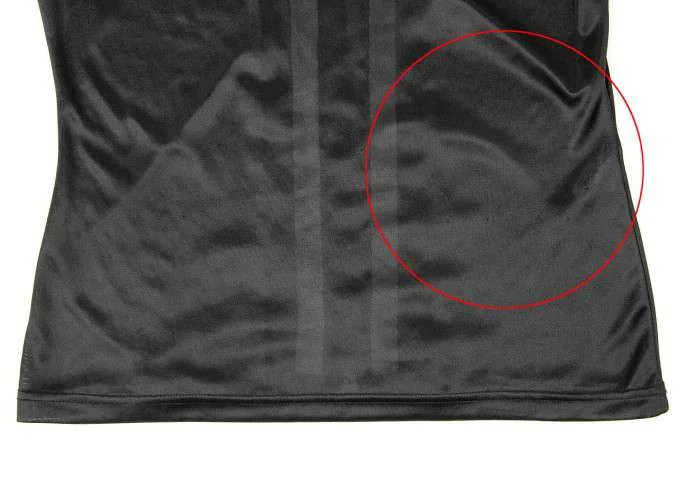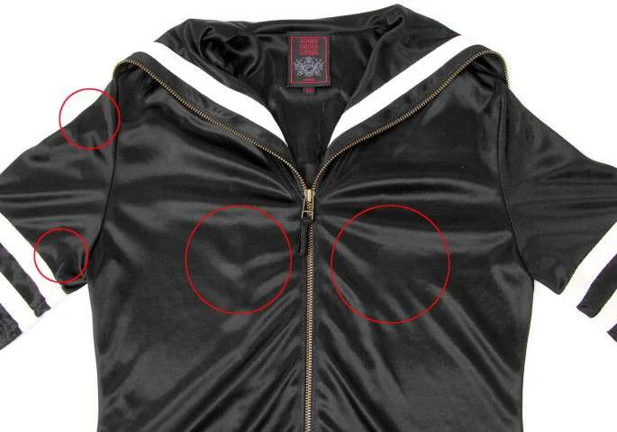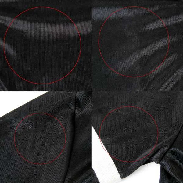 身頃、袖に引っ掛け多数あり。後身頃にシミ、後ろ左肩に薄汚れあり(写真参照)。