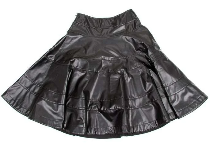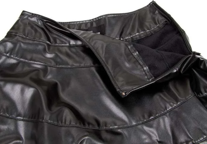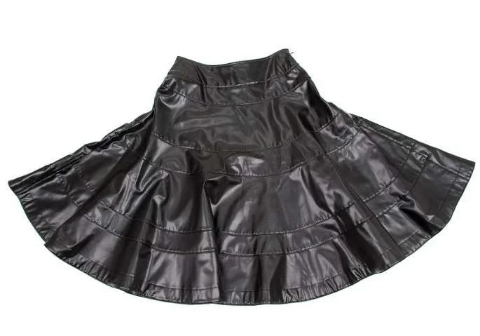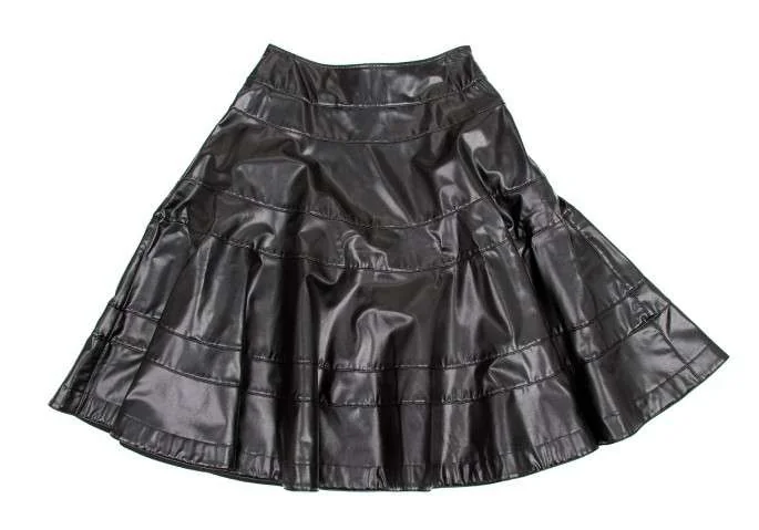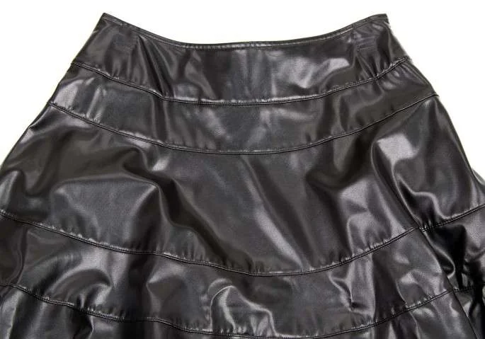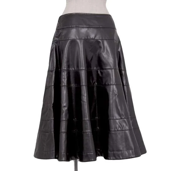 トリコ コムデギャルソンtricot COMME des GARCONSフェイクレザー切り替えフレアースカート 黒M