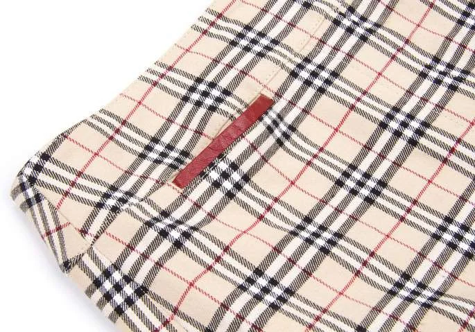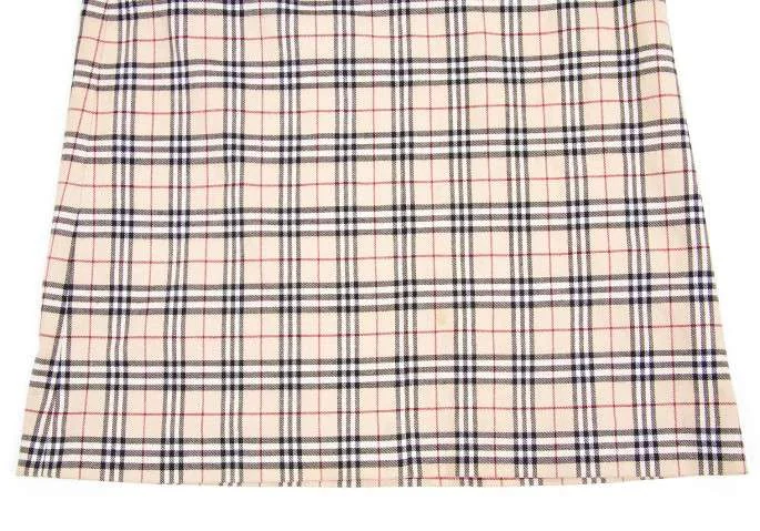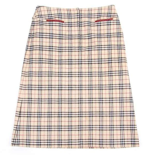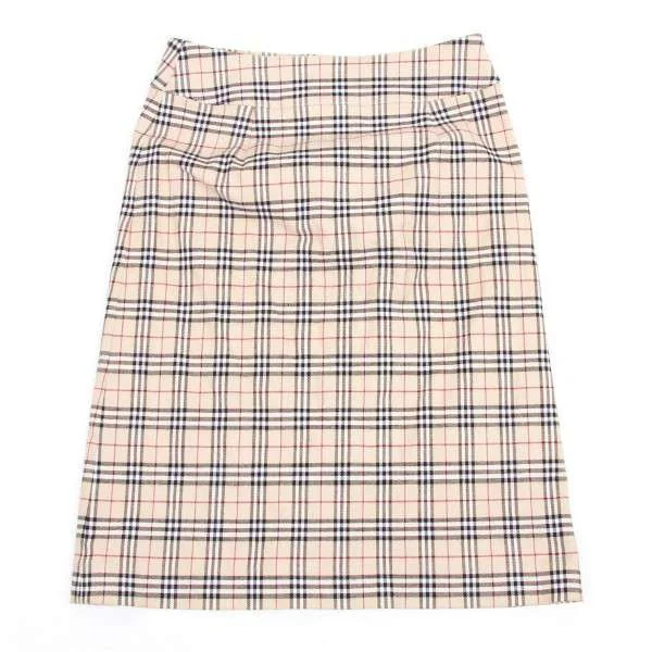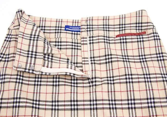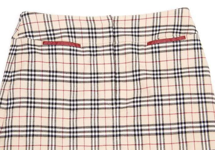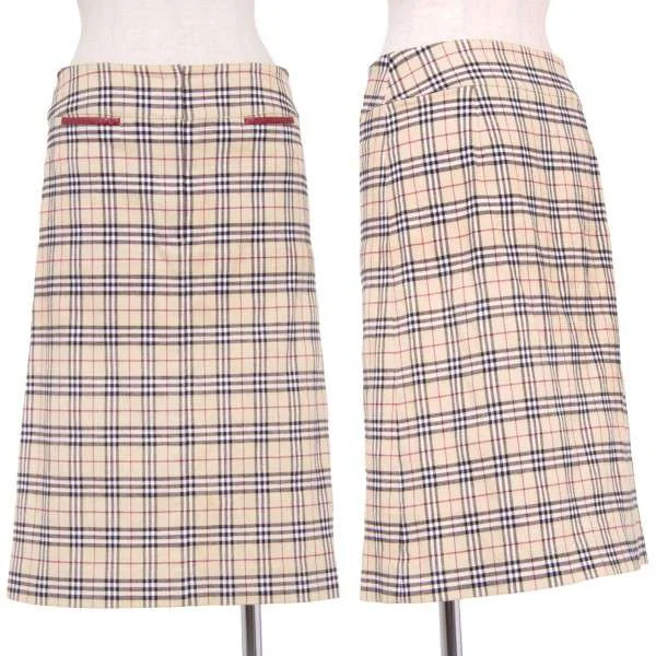 【SALE】バーバリー ブルーレーベルBURBERRY BLUE LABEL フェイクレザーパイピングコットンストレッチノバチェックタイトスカート キャメル38