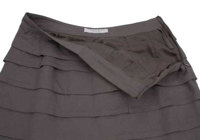 【SALE】ボディドレッシングADORE BODY DRESSING サイドジップウールシルクティアードスカート グレー38