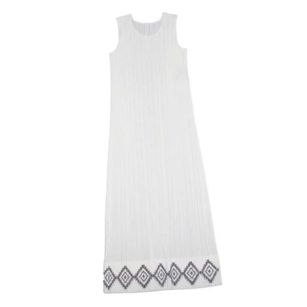 【SALE】プリーツプリーズPLEATS PLEASE 裾幾何学レイヤードノースリーブワンピース 白3