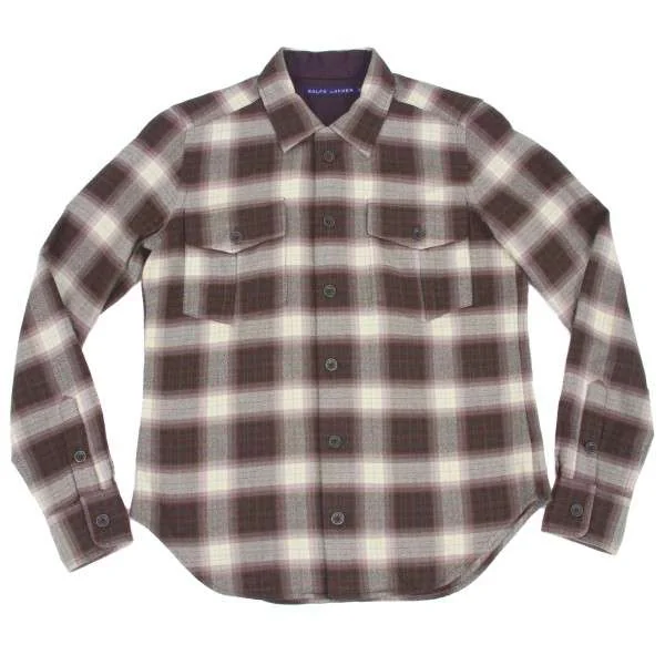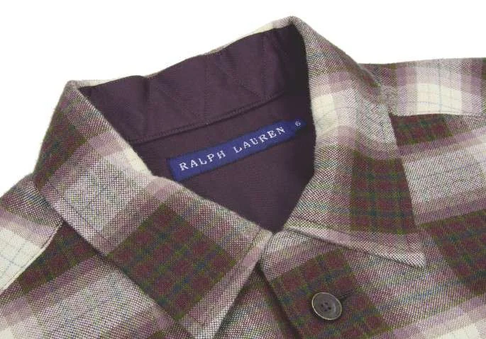 【SALE】ラルフローレンRALPH LAUREN チェックレーヨンウールシャツジャケット パープル茶6